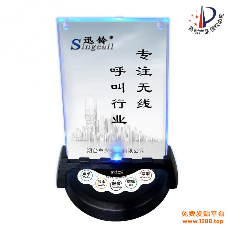 -五键呼叫,同时具有点单、加水、服务、结账及取消功能