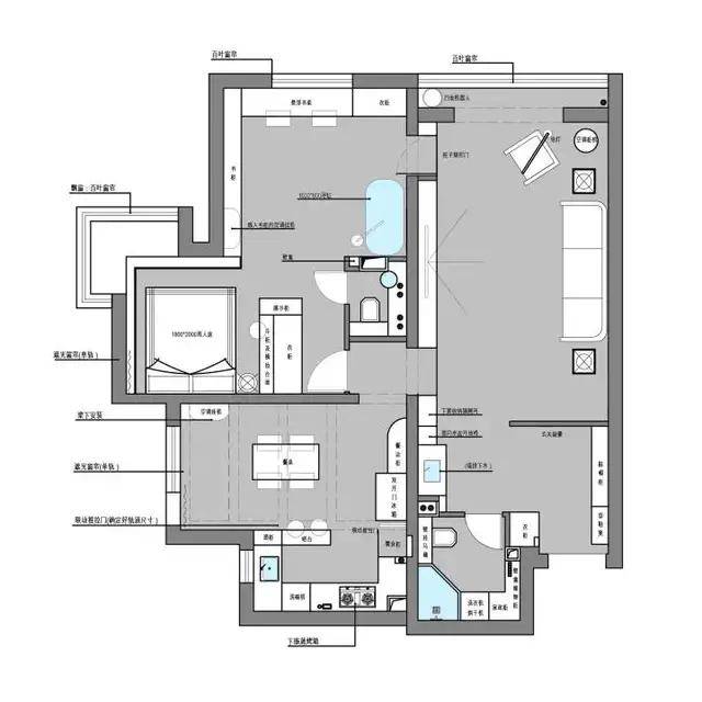 玄关设计一个玄关衣帽间:衣柜+鞋柜,存放外出常穿的外套、鞋子、包等,满足业主归家后净衣的需求;同时设置换鞋凳,更加方便生活需求