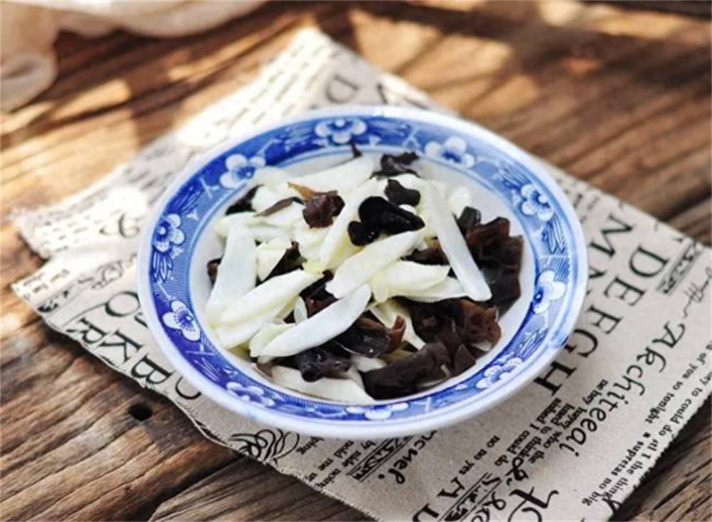 2.山药切的时候注意厚薄一致,切2毫米左右最好。厚了不易入味,薄了容易碎。木耳也不能太小,稍微大点吃着有嚼劲。