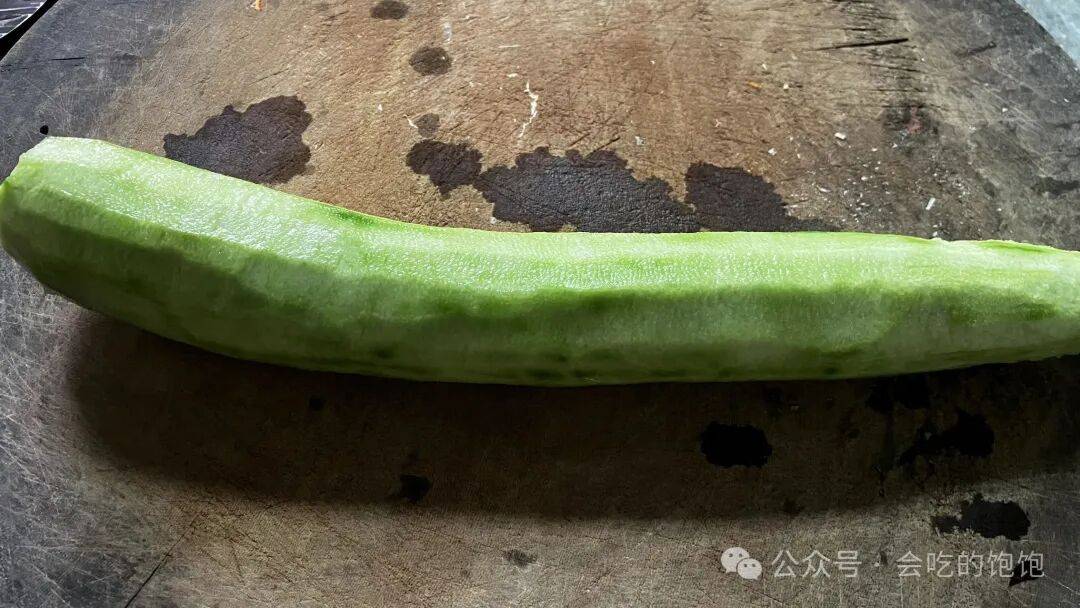 1️⃣我这里用了1根丝瓜,丝瓜的外皮比较粗糙硬口,用削皮刀将外皮削除干净了,用流动的清水冲洗干净。
