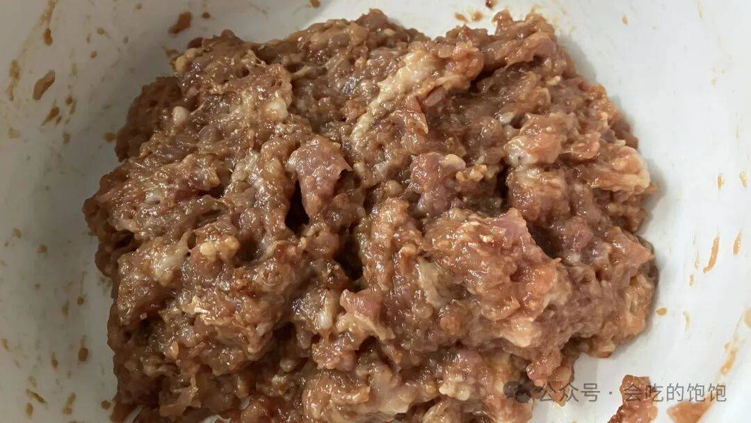 5️⃣往肉末里,加入少许的盐、少许的十三香、少许的味精、2小勺生抽,1小勺老抽,1小勺蚝油,再倒入提前泡好的葱姜花椒水,(葱姜花椒水可以帮助肉末去腥增香)用筷子顺着一个方向去搅拌,搅拌至肉末颜色一致。