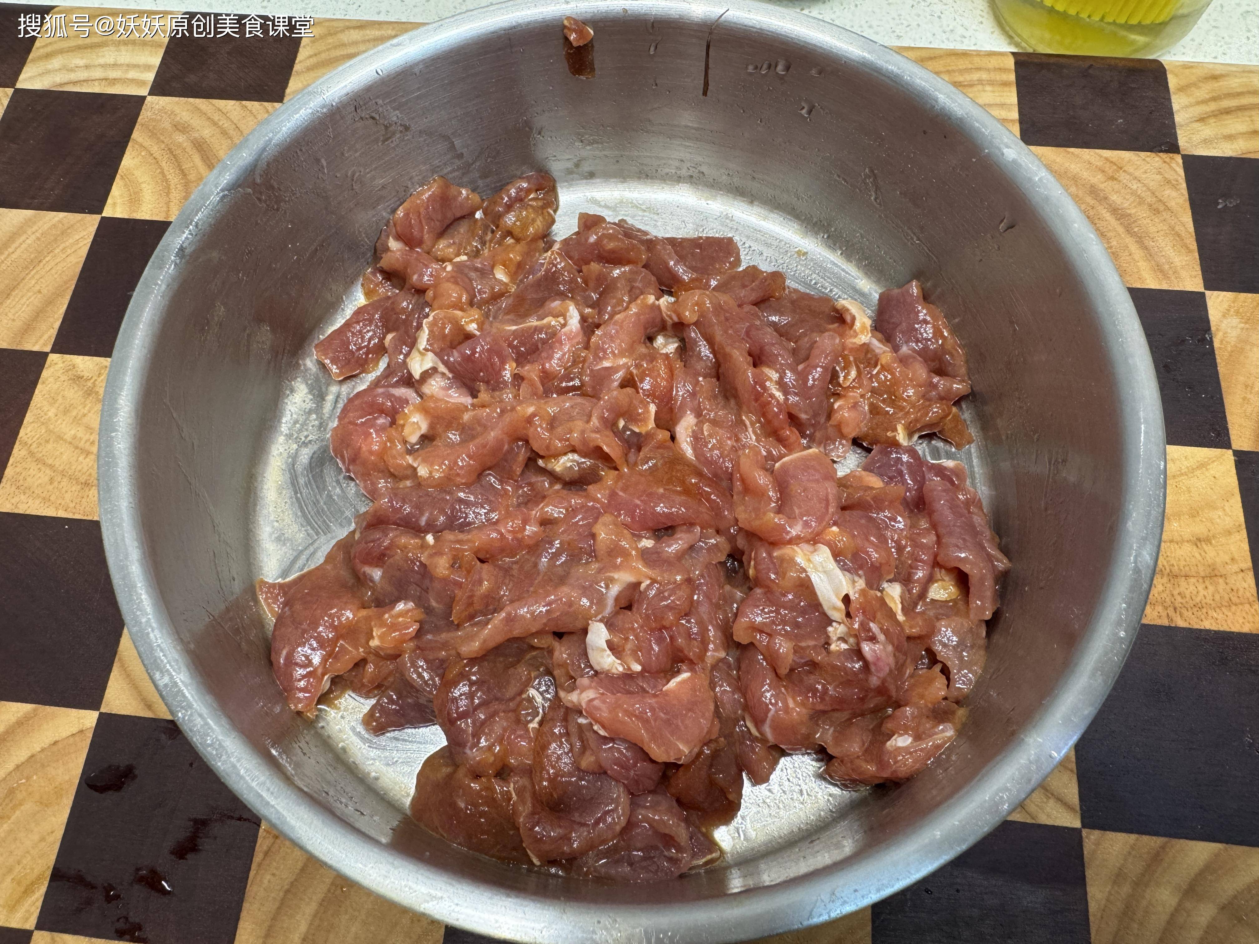 1,牛里脊肉逆着纹理,切成一元硬币厚度的片状,加少许盐,白胡椒粉,老抽,抓拌均匀后淋上一勺食用油,锁住牛肉的水分腌制十分钟。