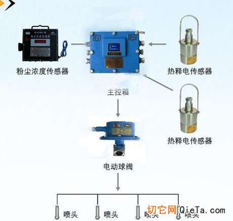 矿用自动喷雾装置粉尘浓度超限自动喷雾 用途:主要用于煤矿井上、井下粉尘浓度较大的作业场所,实现粉尘超标时的喷雾降尘。关联设备主控箱1台、热释光控传感器2台、粉尘浓度传感器1台、电动球阀1台工作原理该装置由微电脑程序化自动控制,粉尘浓度低于粉尘浓度传感器设定值时,装置不工作;当粉尘浓度超过粉尘传感器设定值时,粉尘浓度传感器将信号送入主控箱,主控箱即控制电动球阀开启喷雾洒水降尘。当热释光控传感器探测到过往行人时,将信号传递到主控箱,主控箱即控制电动球阀关闭,停止喷雾洒水;人通过洒水区域后,热释光控传感器无信号输出,延时所设定的时间后,电动球阀开启继续喷雾。主要技术参数1、主控箱电源额定电压: 127VAC2、电动球阀动作额定电压: 15VDC3、主控箱本安输出电压: 12VDC4、主控箱本安大输出电流: 470mA5、主控箱本安输出高开路电压: 12V/310mA ;15V/256mA6、传感器工作额定电压: 12VDC7、传感器输出信号: 3V/DC≤高电平≤12VDC;0V/DC≤低电平≤1VDC8、装置主控箱信号输入: 高电平≥6.0V,低电平≤0.5V9、动作控制时间: 5s~1200s可调,误差±2s10、适用水压: 0.2~7.0MPa11、工作方式: 连续12. GCG1000型粉尘浓度传感器的技术指标测量范围:0mg/m3~1000mg/m3测量相对误差:±10℅采样流量误差:18L/min±2.5℅工作电压:9VDC~18VDC(本安)工作电流:≤250mA济宁华科机电有限公司